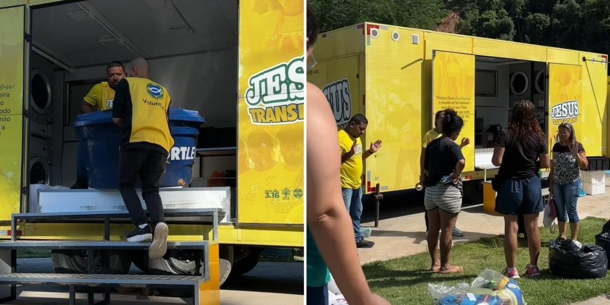 Cristãos levam lavanderia móvel para ajudar vítimas da enchente em Juiz de Fora.